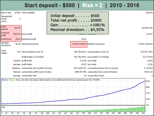 5) The EA can be adjusted for both conservative and aggressive trading of any style.